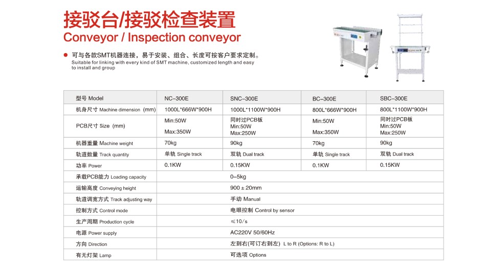 SMT周邊設(shè)備主要有:全自動PCB上下料機(jī)、平行移載機(jī)、PCB儲板機(jī)、NG/OK緩存機(jī)、接駁臺、光板真空上料機(jī)、翻板輸送機(jī)等小型機(jī)。