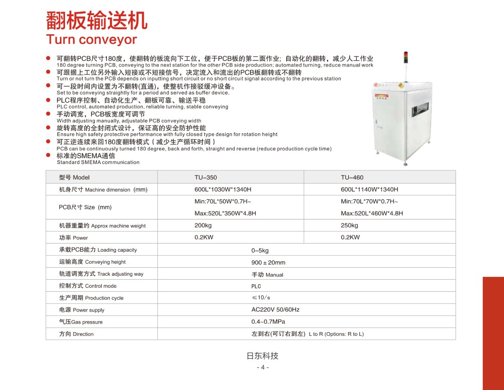 可跟據(jù)上工位另外輸入短接或不短接信號, 決定流入和流出的PCB板翻轉(zhuǎn)或不翻轉(zhuǎn);
