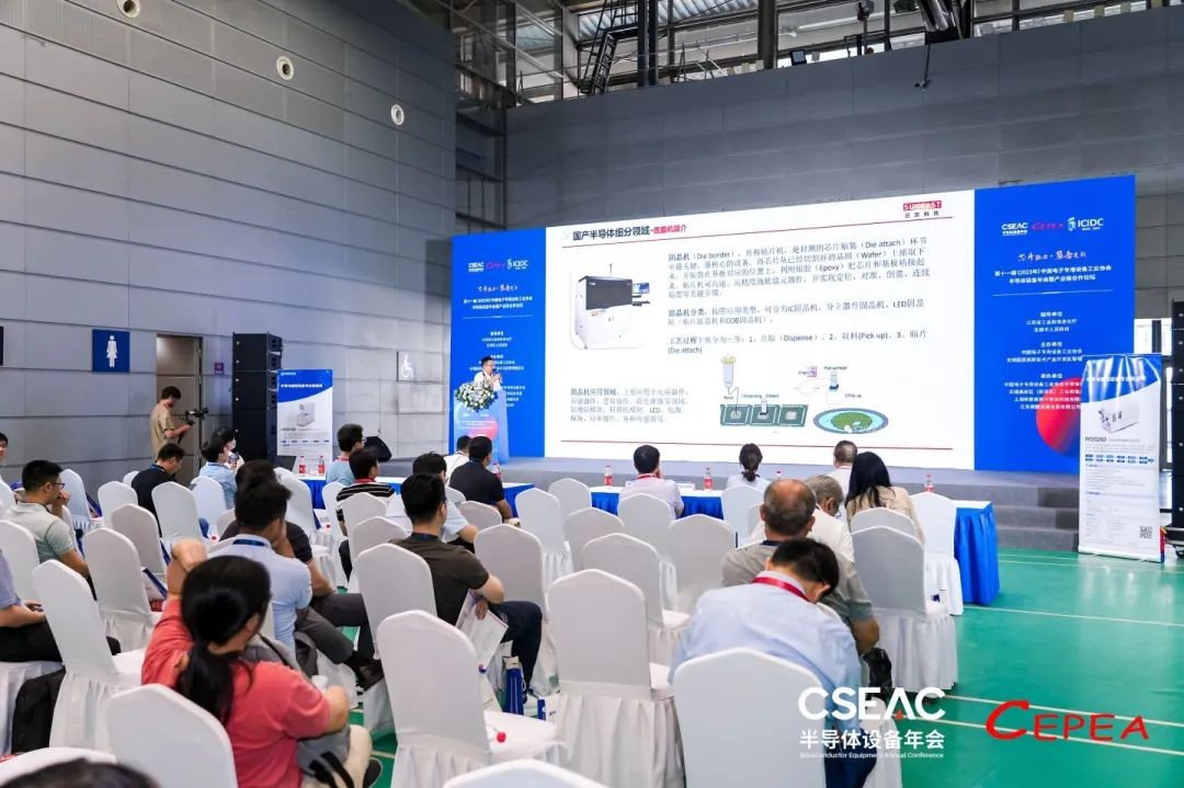在大會的“新品發布”專場,日東科技研發經理王永剛,現場發布了新款半導體封裝設備“IC貼合機WBD2200 PLUS,并與觀眾分享了半導體封裝設備的行業背景、國產化發展現狀。