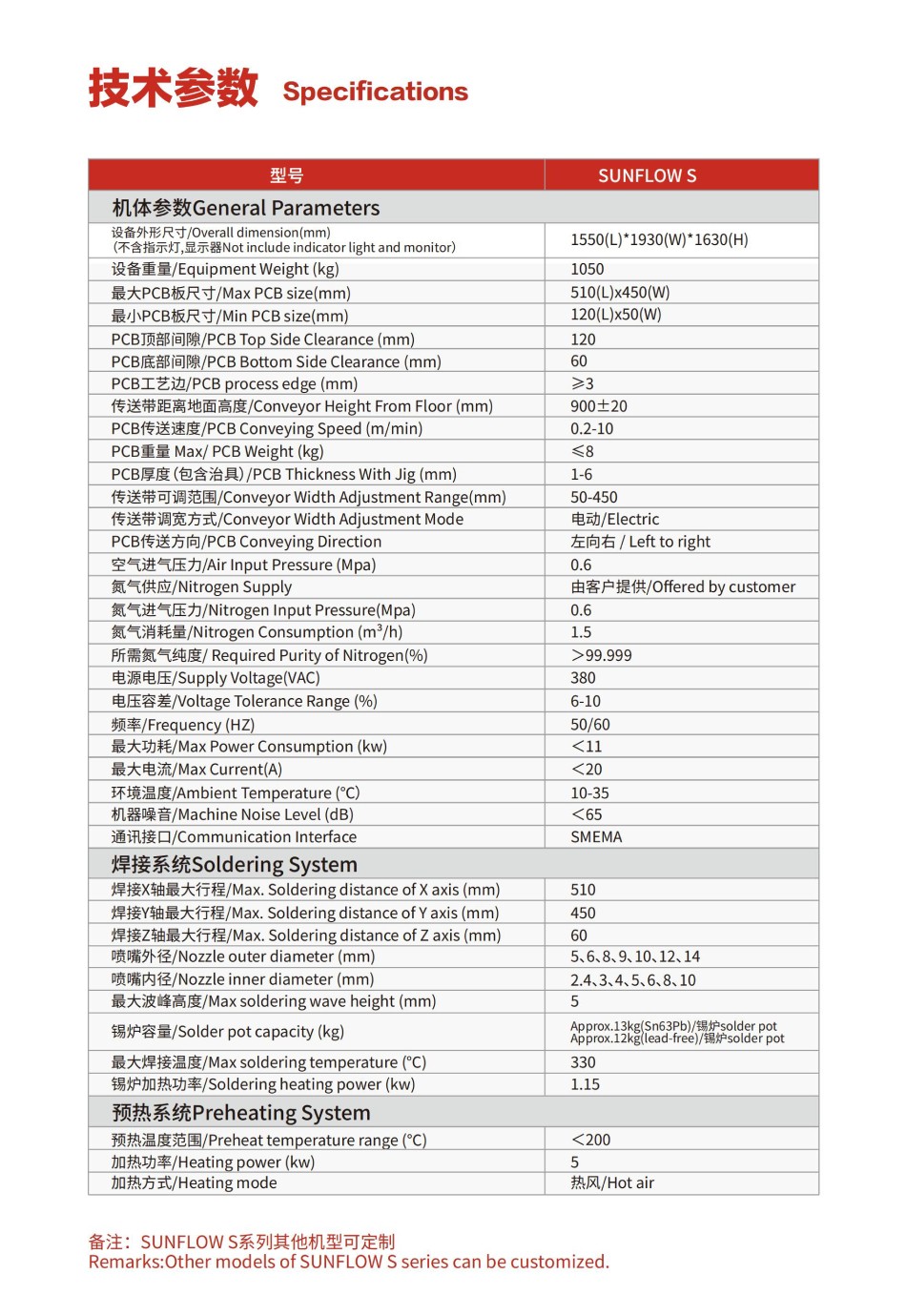 備注:SUNFLOW S系列其他機型可定制