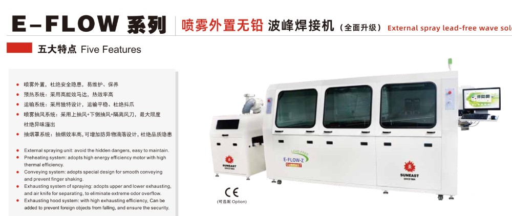 波峰焊(噴霧外置)E-FLOW-Z系列產(chǎn)品特點: