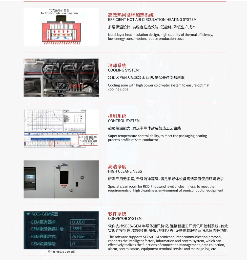 1、 專利熱風系統(tǒng),高效熱補償能力,精準控溫精度;